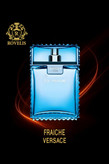 روی بطری شفاف این عطر، نام Eau Fraiche با رنگ تیره به چشم میخورد. مایع بیرنگ درون بطری از روی شیشهی آبی آن بهخوبی دیده میشود. در کنارههای بطری، برجستگیهای ظریف و هنرمندانهای کار شده که زیبایی آن را دوچندان میکند. در بالای نام Eau Fraiche در یک کادر فلزی، نشان Versace Man بهخوبی حک شده و خودنمایی میکند.